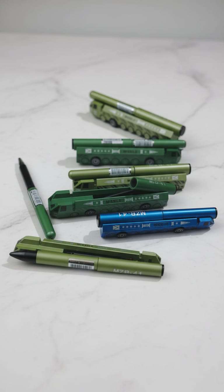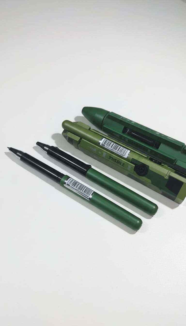 • Distinctive Military Aesthetic: Each pen features a sleek, matte green finish inspired by tactical gear, complete with a specialized “Missile” themed storage case.